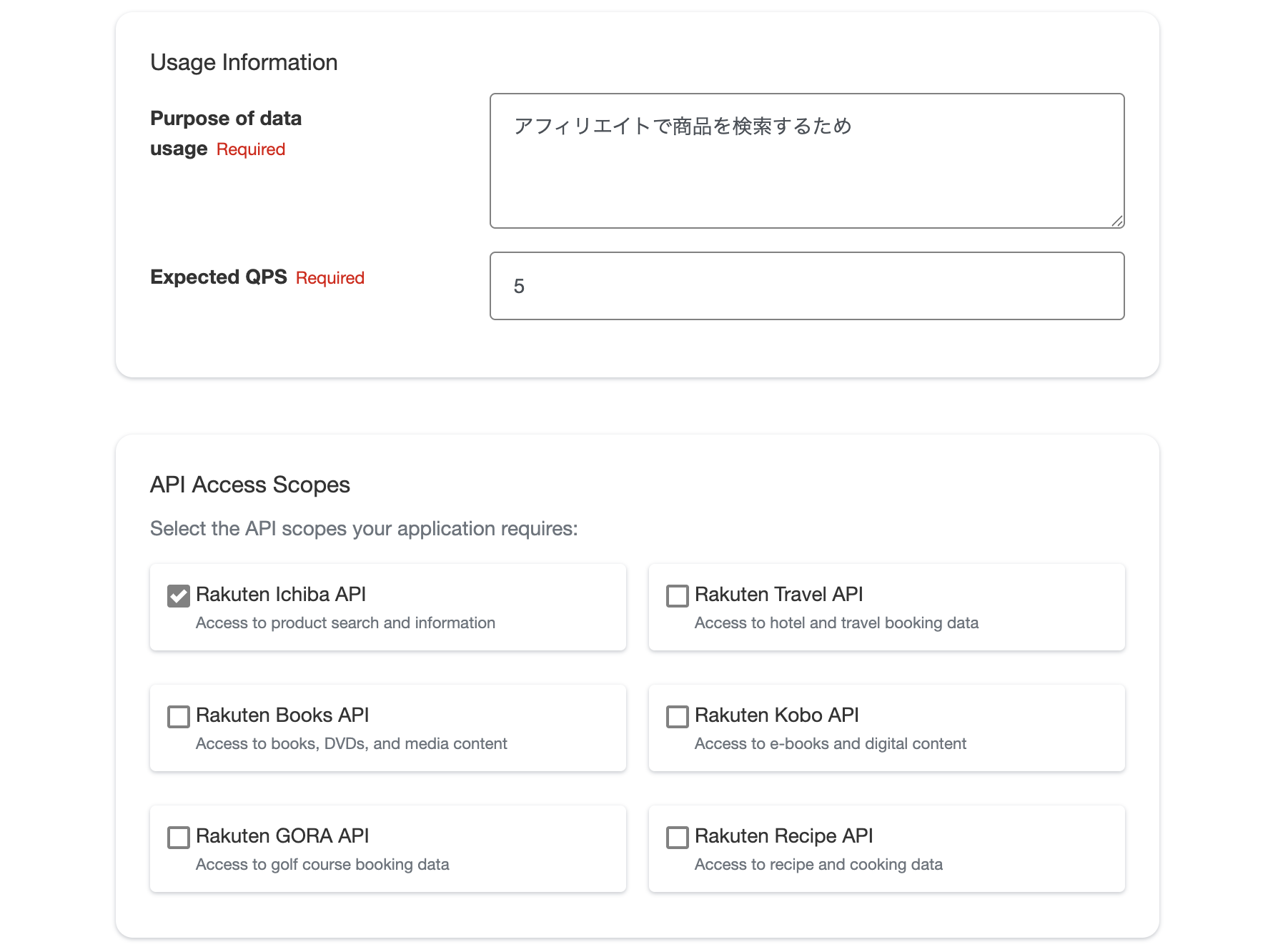 - API Access Scope: 「Rakuten Ichiba API」にチェックを入れてください。