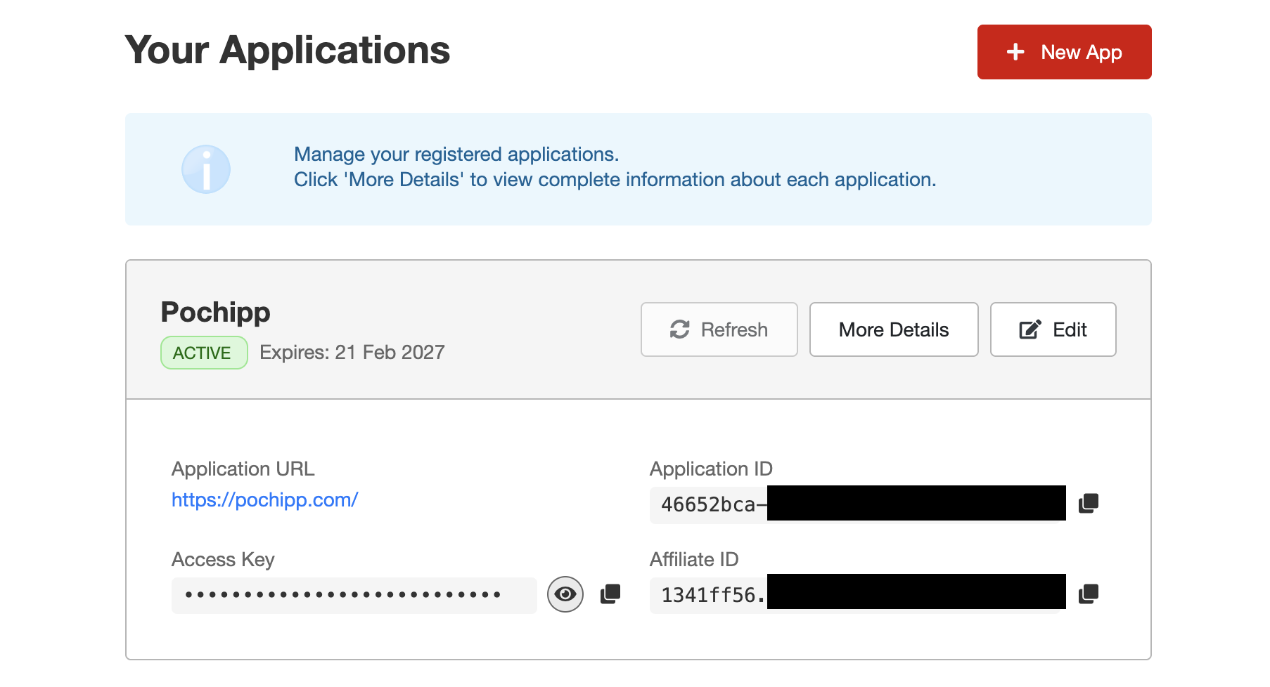 この影響により、ポチップで楽天APIを通して引き続き検索を行うためには、新たに「アプリの再登録」「ポチップ設定の更新」を実施していただく必要があります。