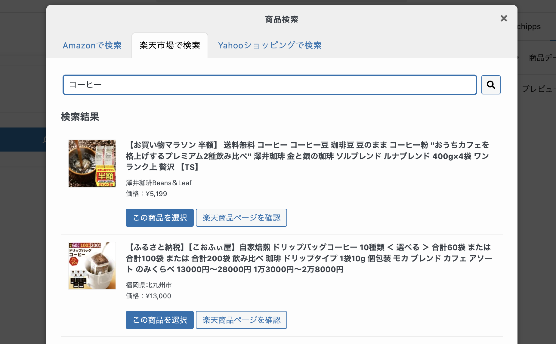 楽天で商品検索が行えるようになっていれば完了です。お疲れ様でした。